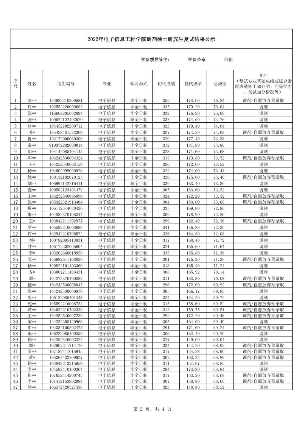 根据《谈球吧2022年硕士研究生复试录取工作方案》,现将调剂硕士研究生复试结果(补充)予以公示。