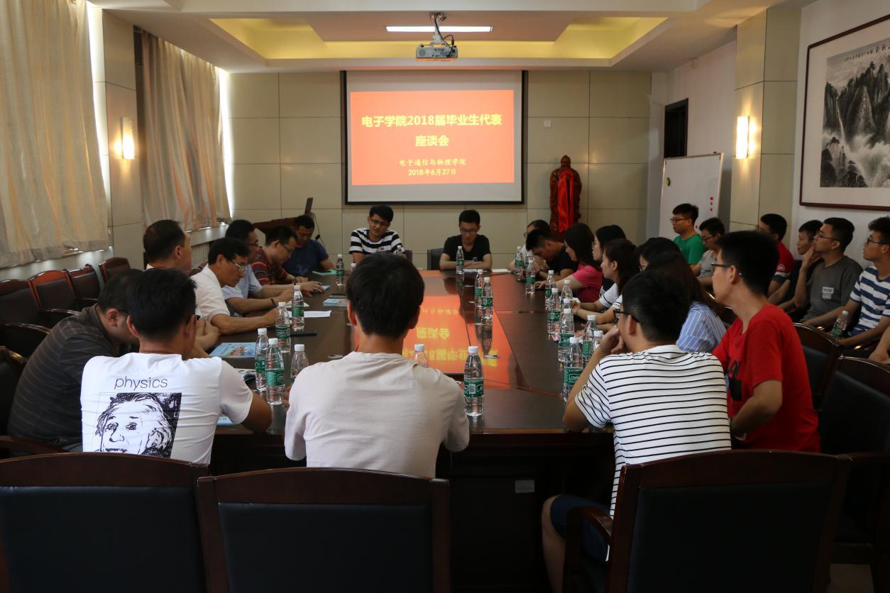 6月27日上午,公司组织毕业生代表座谈会,公司党委书记姚桂芳、党委副书记聂西文、电子信息工程系滕升华、电子科学与技术系郝建军、陈达与2018届毕业生代表进行深入交流。