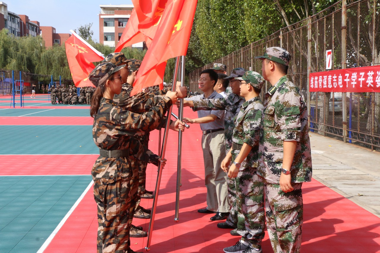 上午9时,授旗仪式开始,各连整齐列队,军训团向各连授旗。电子十营由五支连队组成,分别为博学一连、慎思二连、明辨三连、笃行四连、求真五连。授旗仪式过程中,各连护旗手精神抖擞、步伐整齐,双手庄严地接过印有连队名称的旗帜,各连队以掌声热烈欢迎。辅导员栾伟娜强调军训纪律,希望同学们能够发扬电子精神,不怕苦、不怕累,全身心投入到军训当中去,以优异的表现完成大学第一堂课。