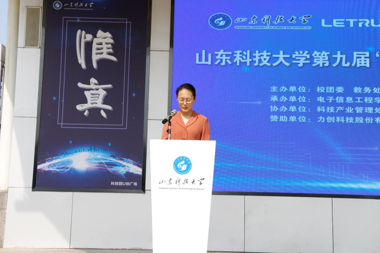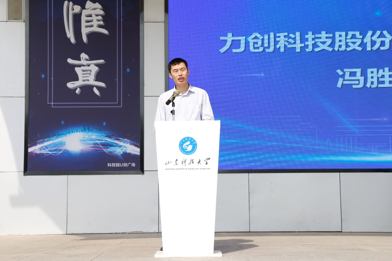 力创科技股份有限公司研发总工冯胜利在讲话中感谢公司搭建交流平台,为行业人才储备提供保障。他介绍了力创集团发展的历程及校企合作的重要成果等,并指出企业高度重视人才培养,希望同学们善于钻研、勇于创造,积极参与到创新实践项目中来,成为服务国家、服务社会的创新型人才。