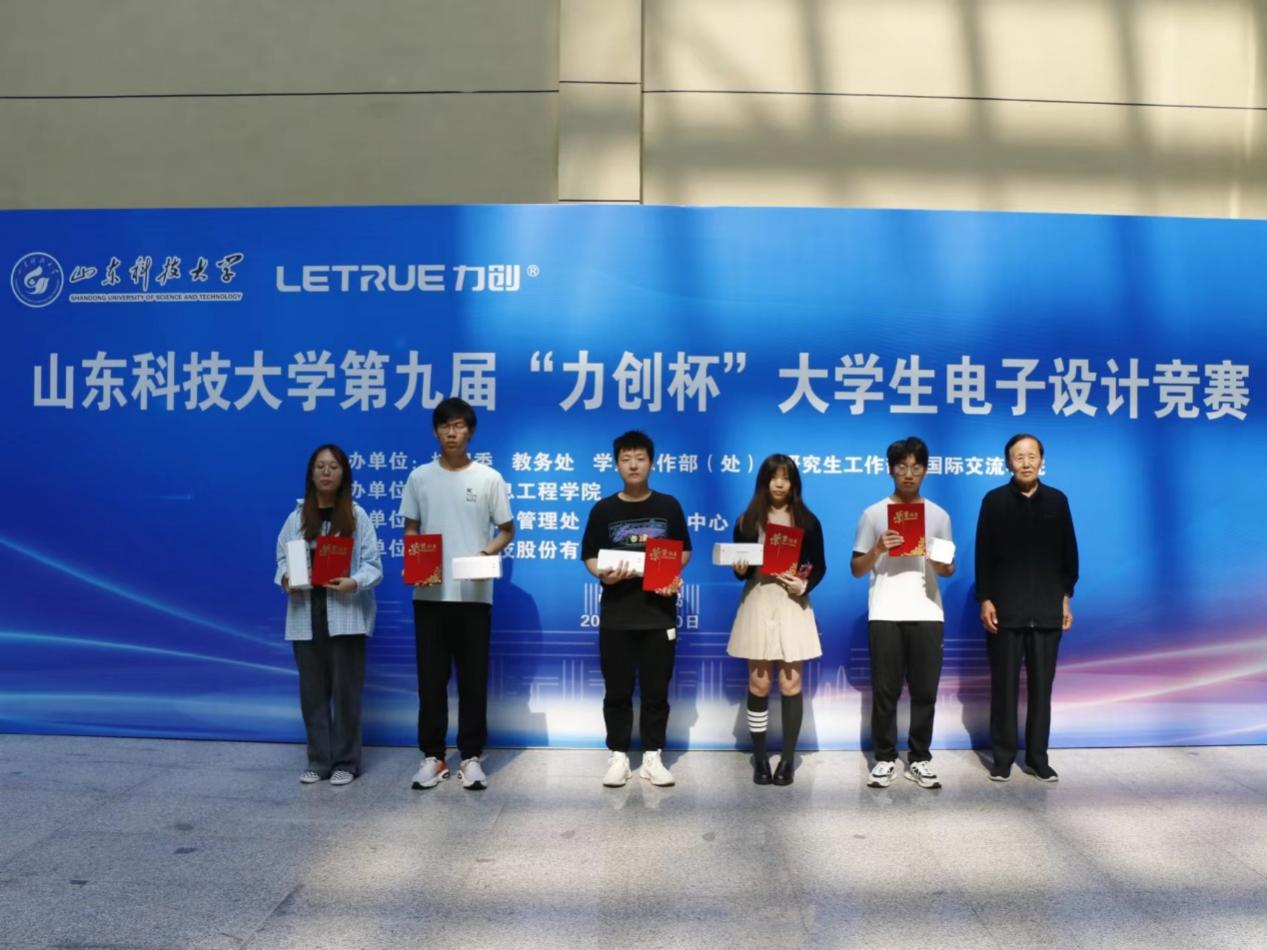 力创科技股份有限公司高级顾问马宝甫、公司党委副书记兼副经理陈冰和电科系主任王立华为获奖参赛队颁奖。