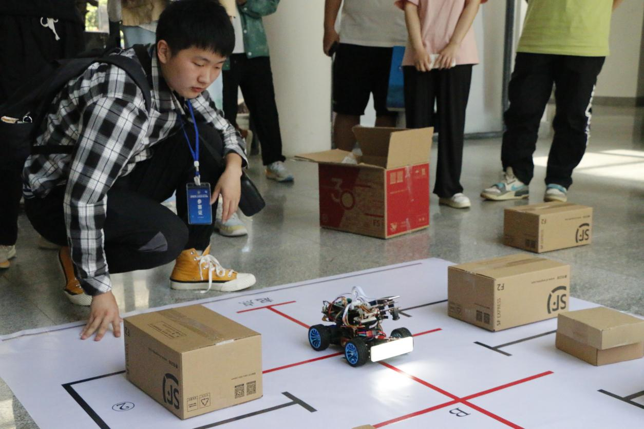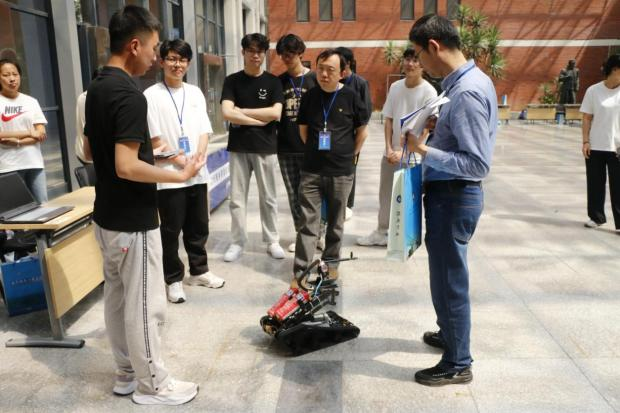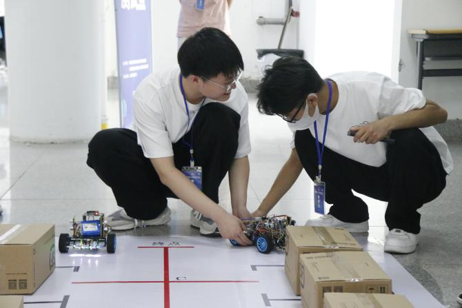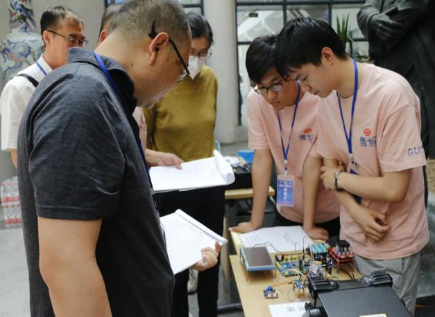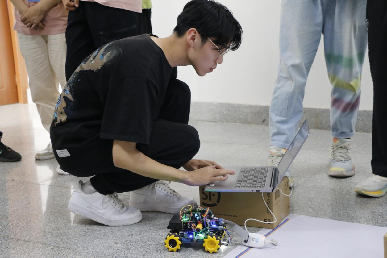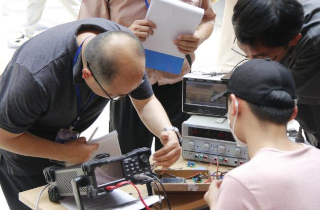 一排排LED灯逐个点亮、一条条函数波形闪过示波器、一辆辆小车行驶在赛道上以及涌现出的双模式智能绿篱修剪机、全自动智能消防车等创新作品,这些背后都是每支团队日夜兼程的付出与努力,体现了大家对科技的热爱、对创新的执着以及对电子信息知识的孜孜以求。比赛中,选手们在规定时间内不断调试作品,力争以最完美的效果和最精准的数据进行展示。评审专家组对每件参赛作品严格测评,LED灯电路设计合不合理、示波器显示波形有无失真、小车能否顺利完成基本动作等等。比赛期间,优秀的作品常常引来同学们的驻足和围观,各参赛队之间也在相互学习、不断交流。