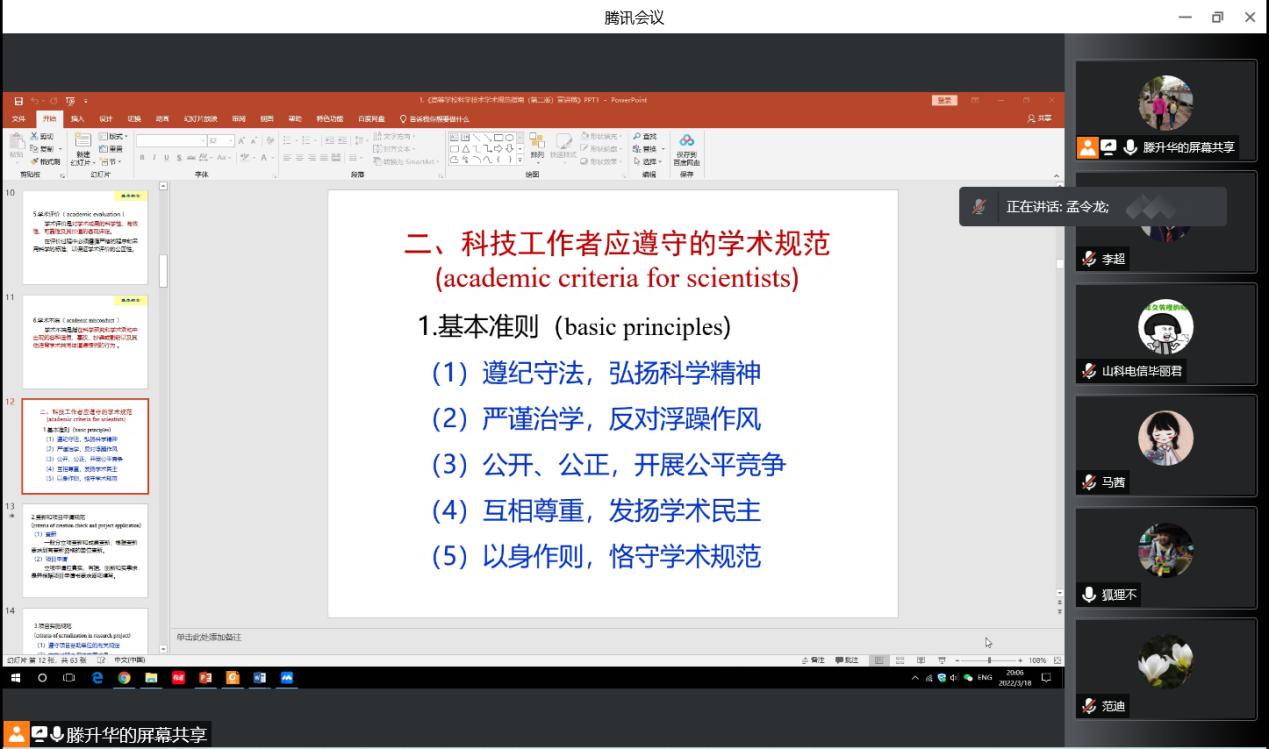电子信息系在教研活动中总结线上教学情况,交流直播教学平台使用经验,并针对科研诚信和学术规范开展集体学习。
