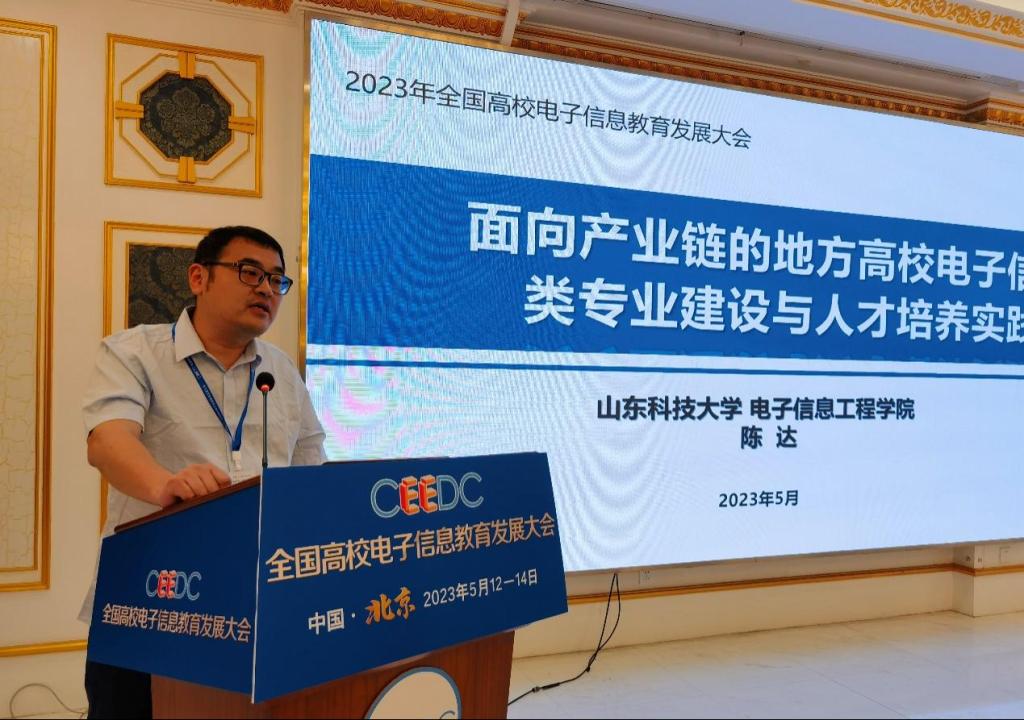 5月12日至14日,由教育部高等公司电子信息类专业教学指导委员会主办的2023年全国高校电子信息教育发展大会在北京顺利召开,经理陈达受邀出席并做题为“面向产业链的地方高校电子信息类专业建设与人才培养实践”的报告。参加会议的还有经理助理范迪及通信系副主任郝建军。