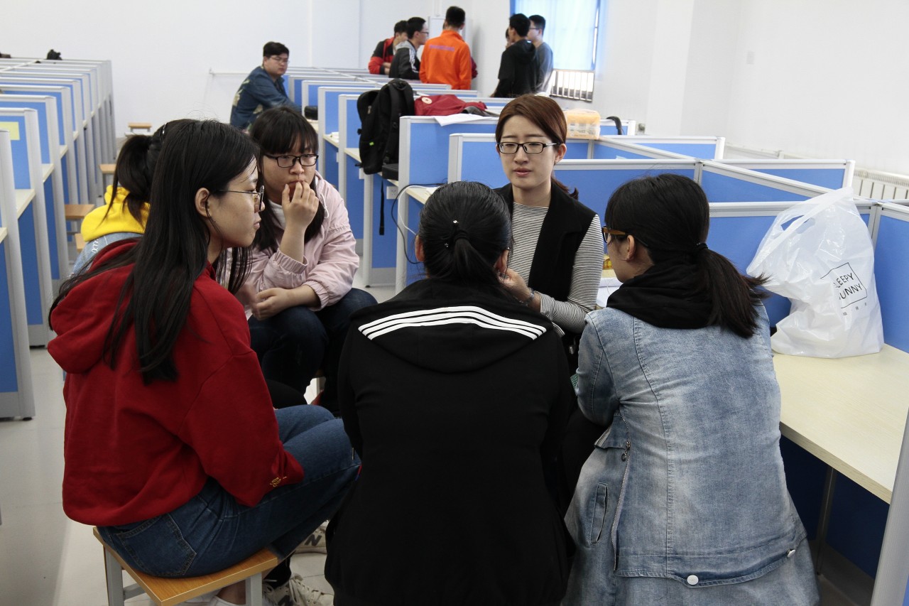 考研取得成功的同学进行自我介绍后,大家根据目标院校和专业纷纷寻找起“取经”对象。学长学姐有问必答、耐心解惑,学弟学妹们认真聆听、一丝不苟。在互动交流的过程中,不乏出现考研之路的金玉良言,如“英语是基础,每天都要坚持多听、多读、多背”“数学每天都要保持做题的手感”“高分在于专业课的学习,英语政治较难拉开差距”“考研就是靠知识的积累,学习物理主要是掌握物理的思想”,道理浅显易懂,却说服力十足。