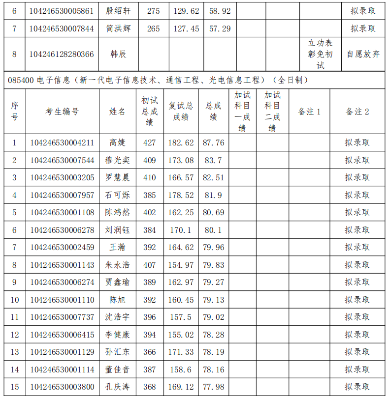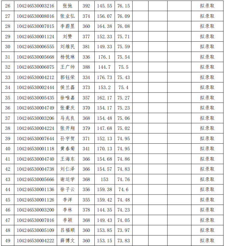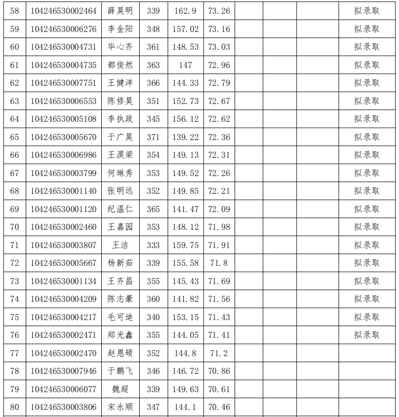公司按照公司下达招生计划进行拟录取,若后期公司调增计划或公示名单中拟录取考生自愿放弃,将按照总成绩从高到低顺次进行待录取,并另行公示。最终拟录取名单由公司研究生院进行统一公示。