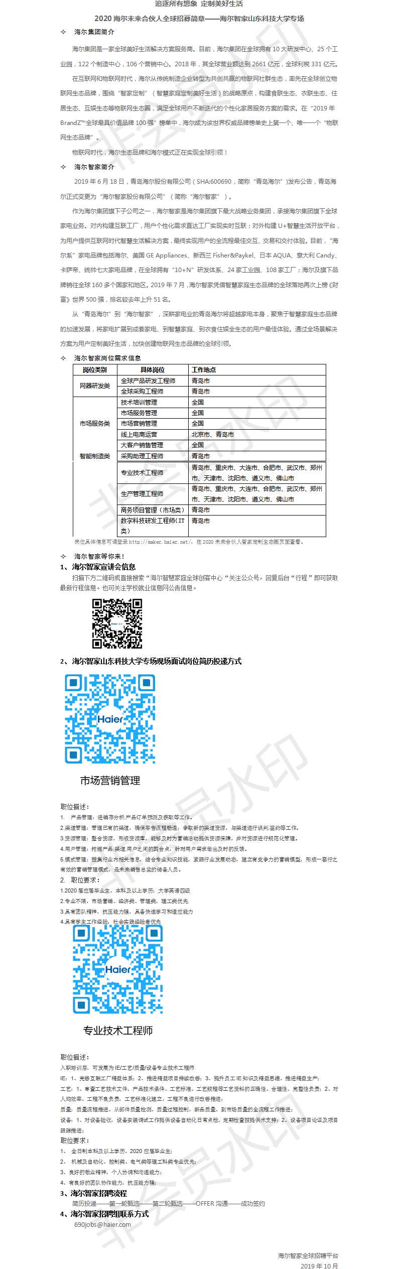 招聘信息019:2020海尔未来合伙人全球招募简章